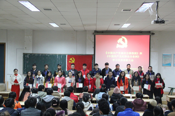 随后,召开的是优秀党员表彰大会。此次会议,是根据《中国共产党廉洁自律准则》及《中国共产党纪律处分条例》,对永利yl23411集团官网表现优秀的党员进行表彰奖励。该表彰大会的奖项分别是“优秀组织奖”和“优秀蹲点党员”。在会议主持人的名单宣读后,被表彰的各位党员分批上台,由易书记和曾老师亲自为他们颁发证书并合影留恋,希望他们再接再厉,为党效力,为人民服务。