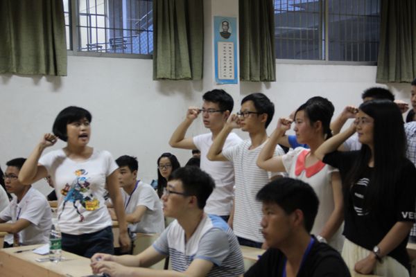 大会在庄严的国际歌中拉开了序幕。随后,新党员全体起立,他们注视着鲜艳的党旗,紧握自己的右手,在曾竞兴的带领下进行入党宣誓。宣誓过程庄严肃穆,每一位新党员都极大地表明自己渴望加入党组织的信念和决心。接着,曾竞兴上台讲话,她先表达了自己对新党员的祝贺,随后向所有党员们强调了几点要求:第一、要严格遵守党纪党规;第二、要做好政治上的清白人;第三、要做好做派上的正直人;第四、要做好群众的贴心人;第五、要做好工作上的领路人。最后曾竞兴强调所有党员必须尽力做到从思想上真正入党,为人民服务。大会继续进行,随后老党员代表左维和新党员代表刘永艳先后表达了作为党员应该要严格遵守党纪党规,为人民服务,并且分别表示在今后会更加严格地要求自己。大会进行到最后,党支部负责人李宗武上台讲话,他对党支部的前期工作和日后工作进行了总结和安排。他指出现在的党支部还存在许多不足:创新性不强、缺乏尝试、政治思想水平不高等。李宗武表示在今后的工作中要加强党员们政治思想素质的提高,继续推进“两学一做”活动,要多尝试,敢于创新。