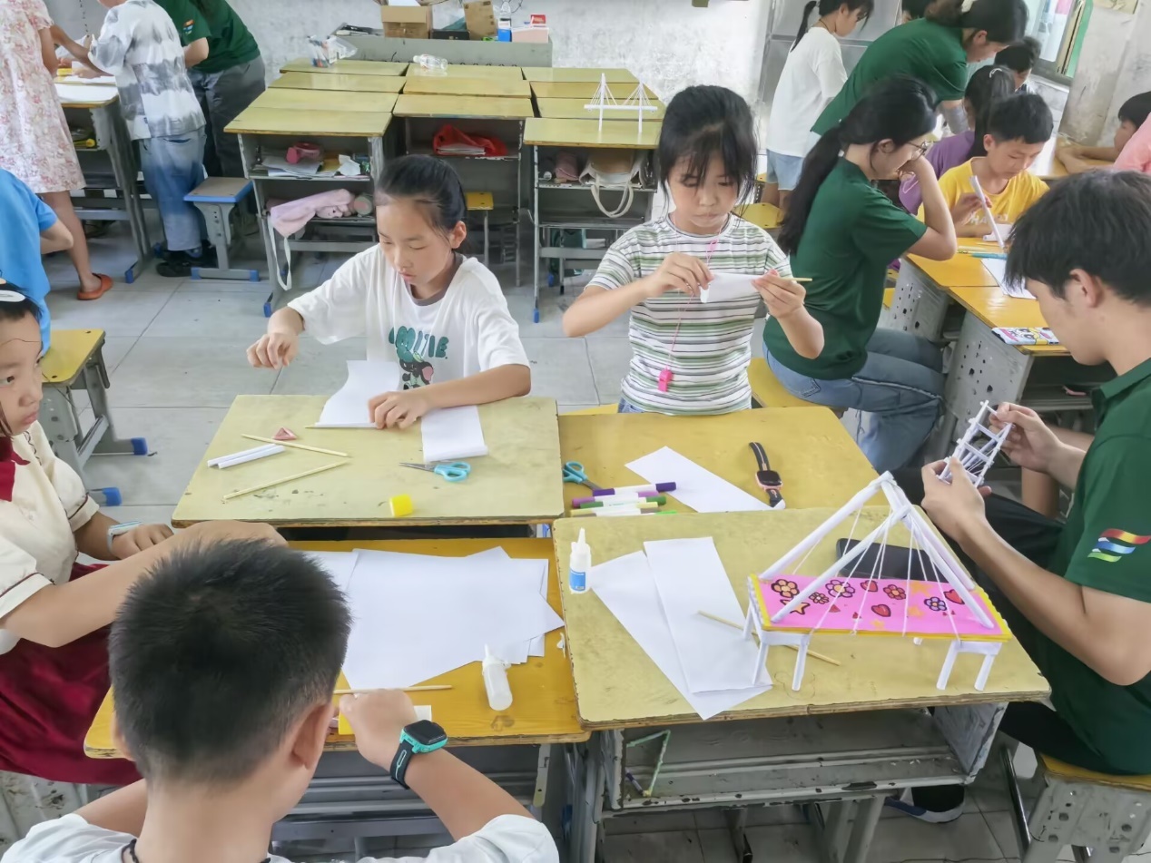 ▲支教组为学生讲解结构建模知识