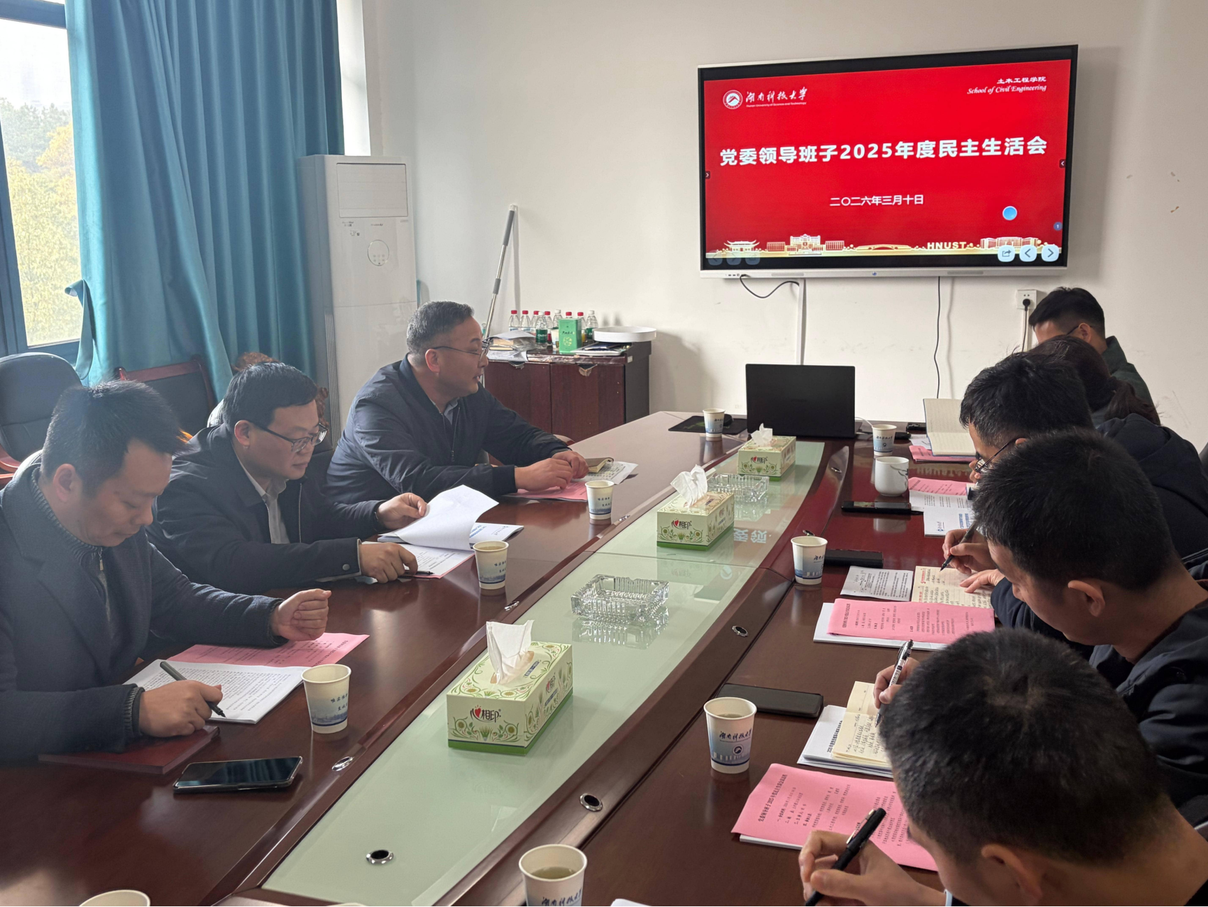 2026年3月10日下午,永利yl23411集团官网党委领导班子在土木楼213A会议室召开2025年度民主生活会。会议紧扣主题,紧密结合学院改革发展实际,深入查摆突出问题、严肃开展批评与自我批评,明确整改方向与重点任务。院党委书记胡伟主持会议并作总结表态讲话。校党委委员、副校长周虎,人事处处长吴建军到会指导。